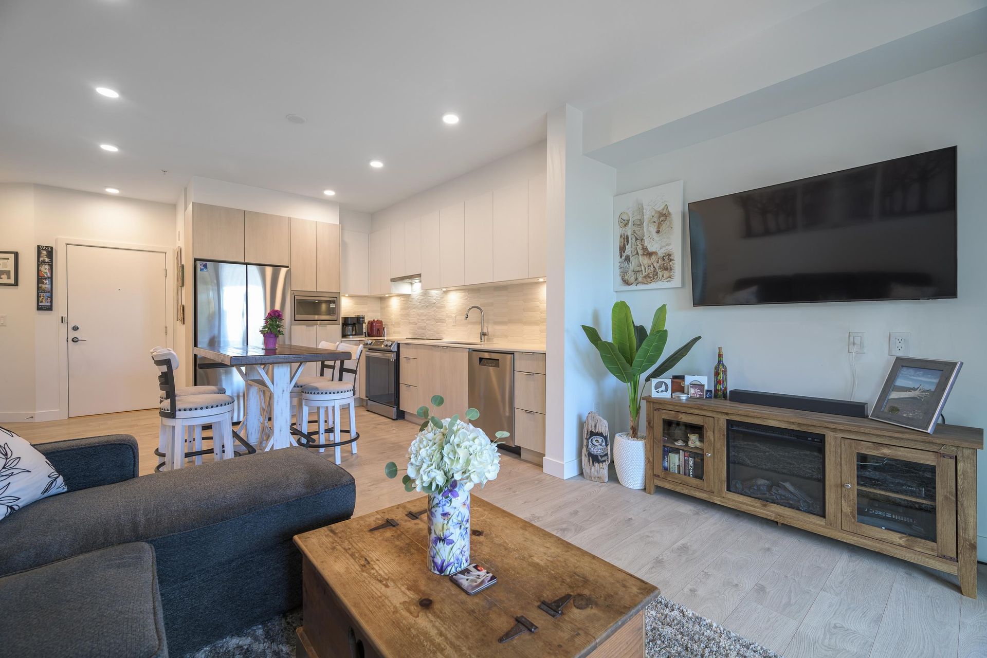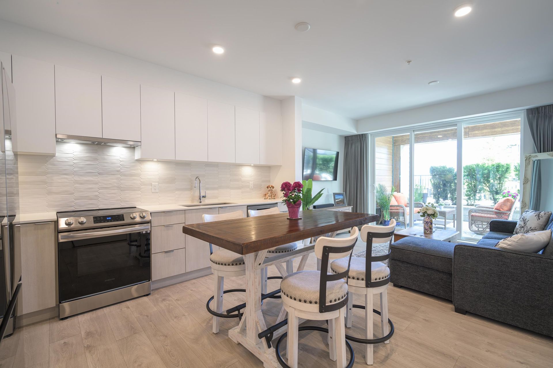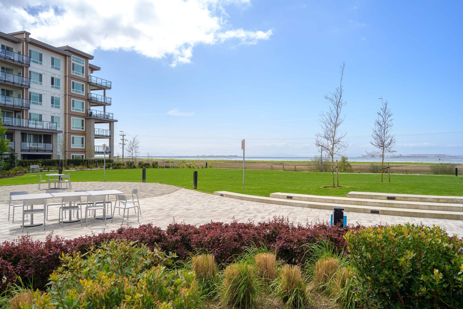 Welcome to this beautifully appointed 2 bedroom condo located at Salt & Meadow by Aquilini, a sought-after waterfront community. This ground level condo offers effortless coastal living complete with an open concept layout with contemporary finishes and air conditioning for year round comfort. Step outside to your spacious 270 sqft private patio, perfect for entertaining. Enjoy resort-style amenities: fitness centre, yoga, pool, hot tub, Boardwalk Beach Club access & workspaces. Steps to trails, parks, sports fields, Tsawwassen Mills, South Point Academy & the ferry. 2 pets any size.
