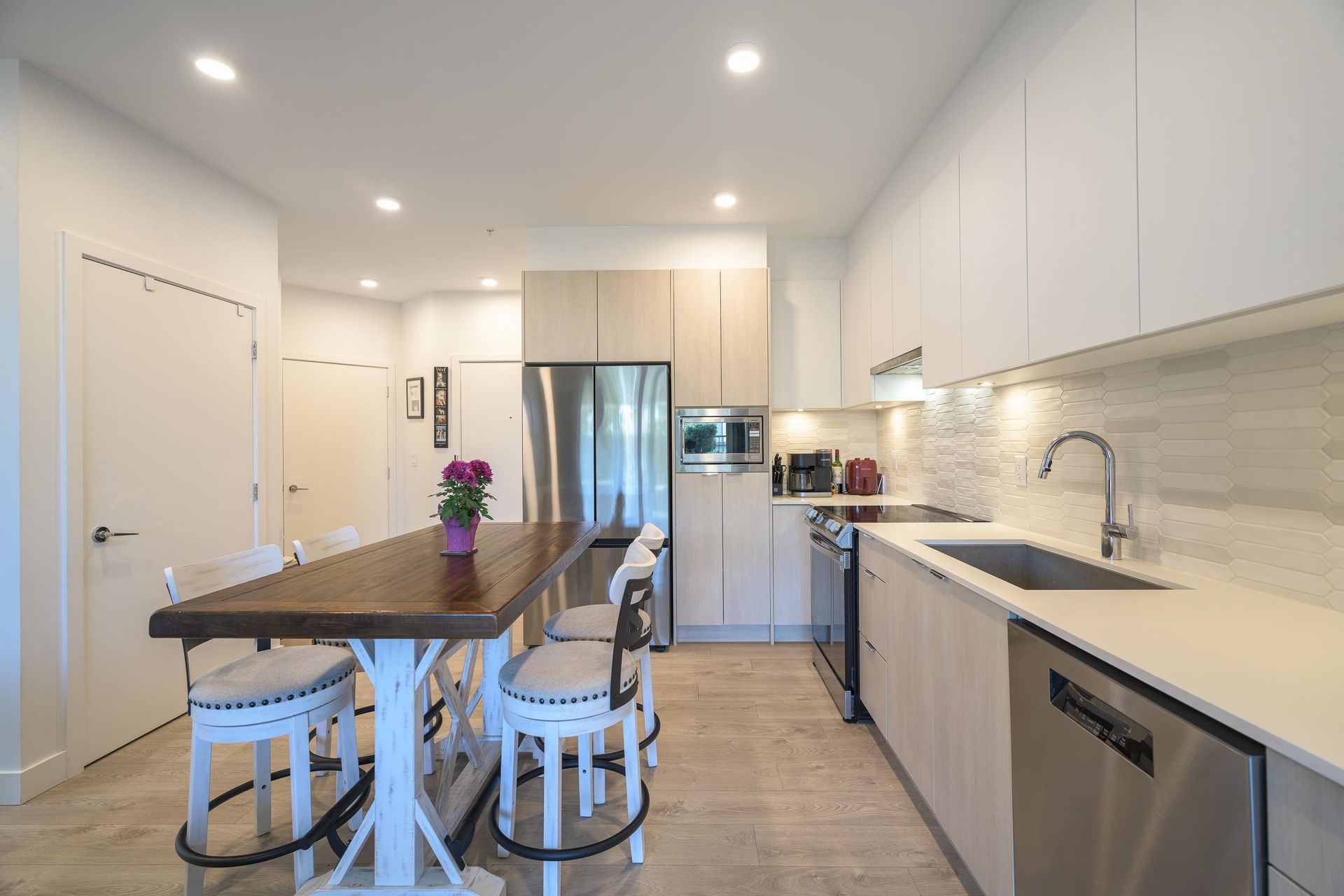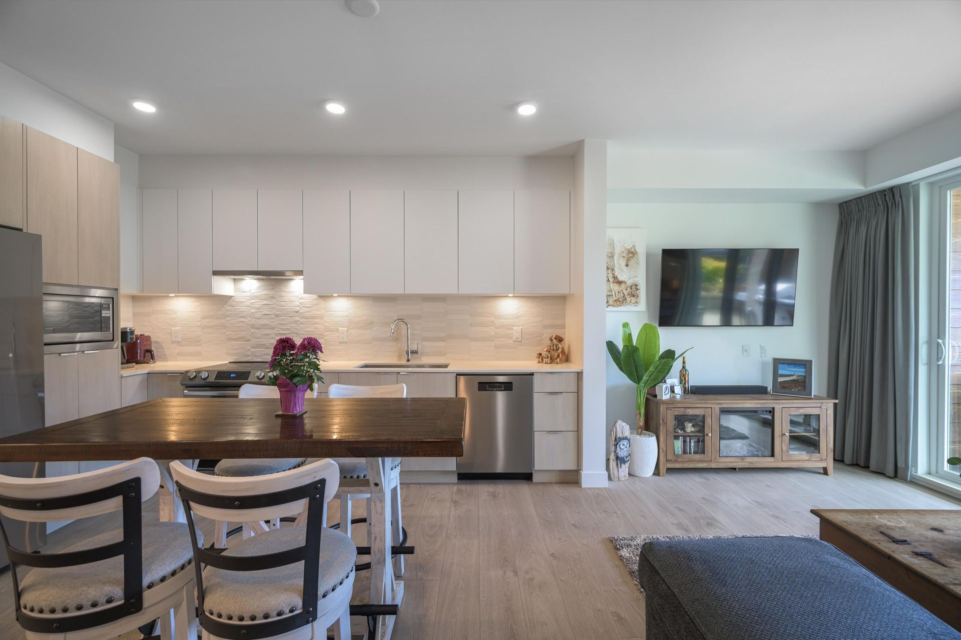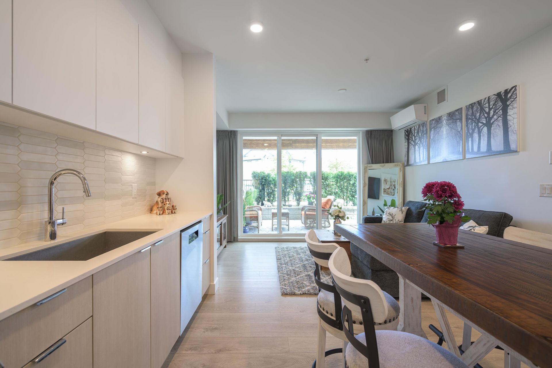 Welcome to this beautifully appointed 2 bedroom condo located at Salt & Meadow by Aquilini, a sought-after waterfront community. This ground level condo offers effortless coastal living complete with an open concept layout with contemporary finishes and air conditioning for year round comfort. Step outside to your spacious 270 sqft private patio, perfect for entertaining. Enjoy resort-style amenities: fitness centre, yoga, pool, hot tub, Boardwalk Beach Club access & workspaces. Steps to trails, parks, sports fields, Tsawwassen Mills, South Point Academy & the ferry. 2 pets any size.
